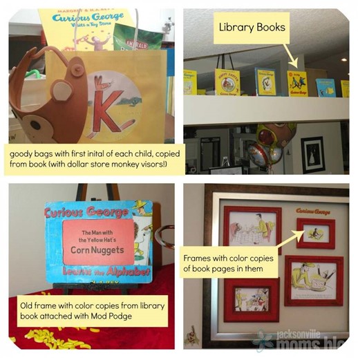 Visit your library. For a Curious George party I hosted for my then four-year-old, I decorated the tops of our cabinets and plant ledges with Curious George books. Everyone thought I bought them, but why buy when you can borrow?