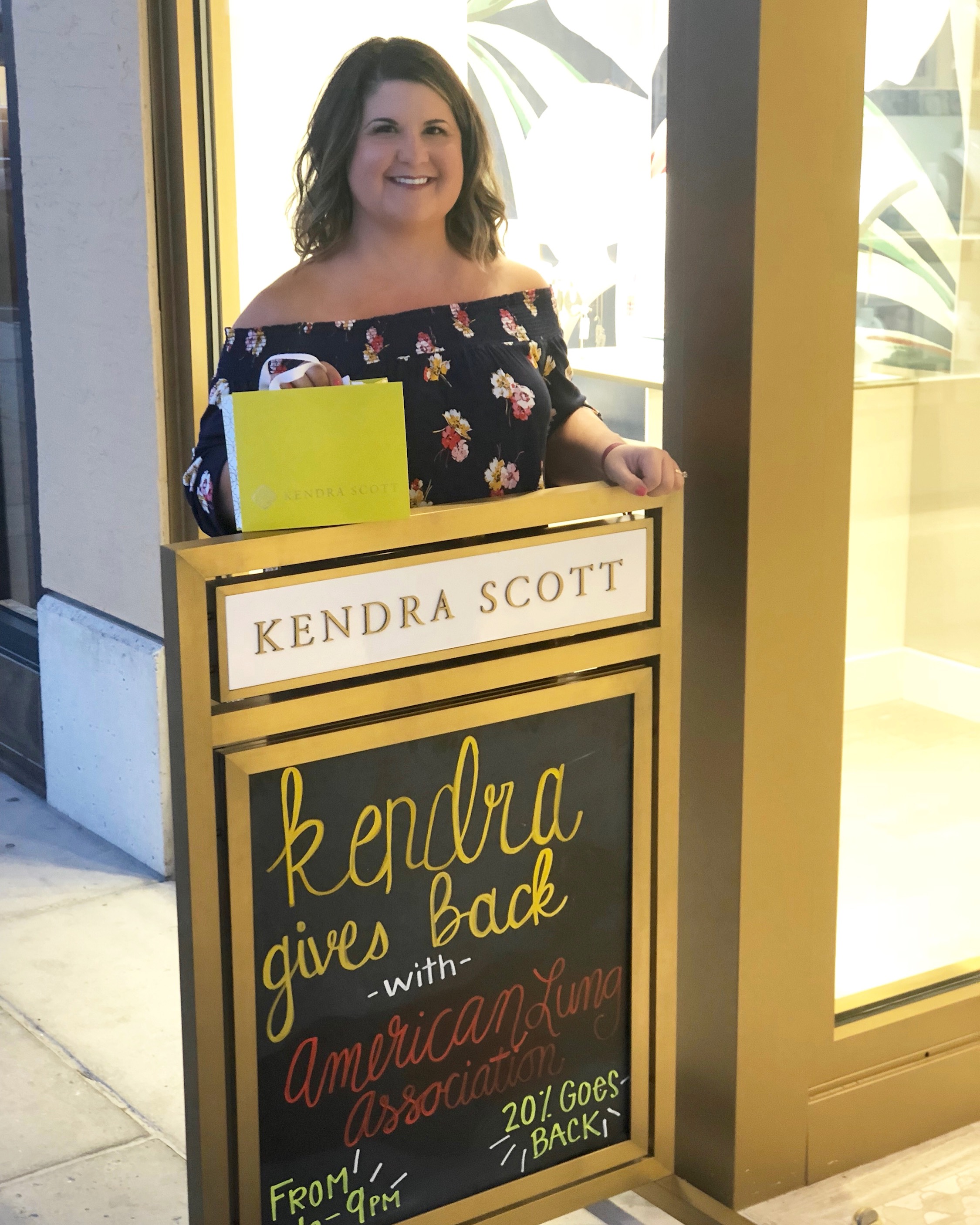 I was elated to host a fundraiser at the NEW Kendra Scott store in the Town Center! on April 27, 2018. Thanks to the generosity of the wonderful staff (and a few wonderful friends!) I was able to raise $480 for the American Lung Association.
